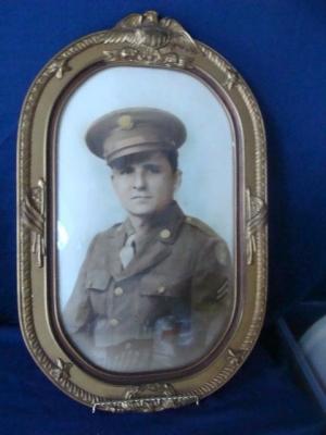 WWII MILITARY SOLDIER PHOTO US CONVEX OVAL GLASS GOLD GESSO EAGLE FLAG FRAME