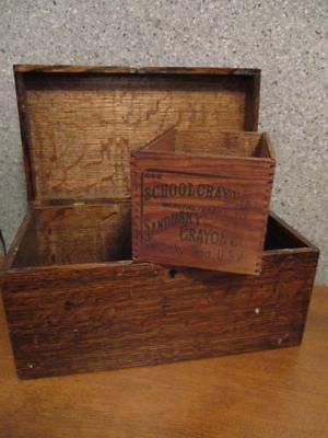 (2) Antique Vtg WOODEN WOOD BOXES / SANDUSKY CRAYON Co. BOX ~ OHIO USA