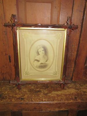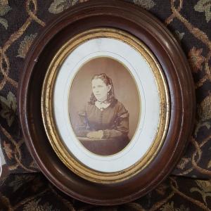 X2 ANTIQUE CIVIL WAR ERA WOOD OVAL PICTURE FRAME WITH ORIG GLASS & OLD PICTURE