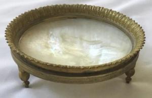 Antique French Bronze Dore, Mother of Pearl Footed Pin Dish / Trinket Tray