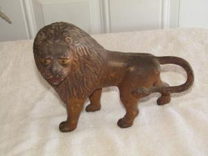 Antique Hubley Cast Iron Lion Doorstop orig 9 1/2 " LONG X 7" h X 4"