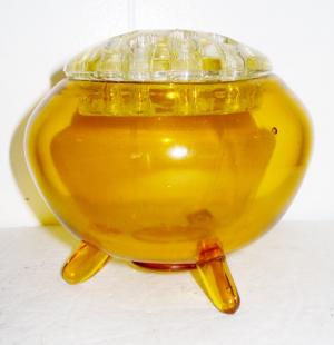 VINTAGE AMBER GLASS FLOWER FROG BEAUTIFUL DESIGN NR