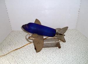 Sarsaparilla Deco Designs 1978 Airplane Desk Lamp with Cobalt Blue Glass.