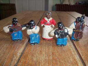 Antique HUBLEY Black Americana Cast Iron Figures Mammy & 4 Jazz Band Members