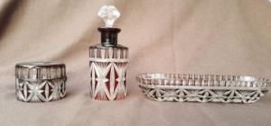ANTIQUE c1860 BOSTON & SANDWICH CUT OVERLAY GLASS PERFUME BOTTLE * NO RESERVE