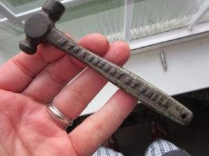 antique SALOON ADVERTISING cast iron NUT CRACKER HAMMER candy CLEARYS phila, pa.