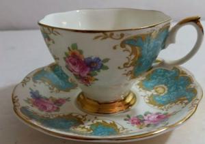 Teal, Gold and Rose Imperial Fine Bone China Tea Cup and Saucer England