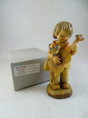 Vintage Hand Carved Wood Statue Figurine Boy Guitar Bird Ferrandiz 6" Italy Anri