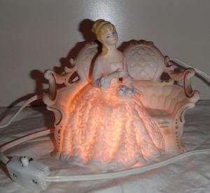 Vintage Porcelain blonde lady provincial Settee lamp night light marked 7939