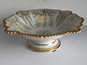 Rare WORCESTER Flight Barr Barr Porcelain SEAWEED Pattern Large Footed Compote