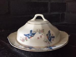 VINTAGE BLUEBIRD COVERED BUTTER DISH