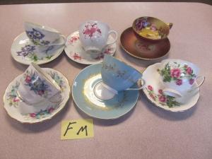 6 FANCY VINTAGE TEA CUPS/SAUCERS,BONE,ROYAL VALE,DOULTON,LEFTON,NORCREST++