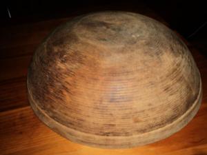 BEST ANTIQUE PRIMITIVE LARGE OLD WOOD DOUGH BOWL W/*1* INCH RIM ~PATINA!