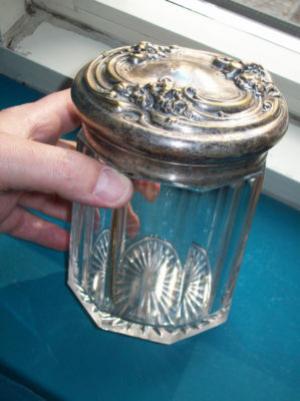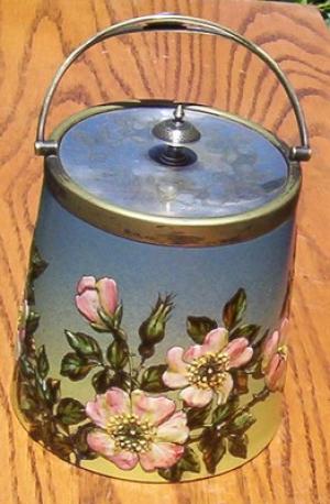 ANTIQUE LINTHORPE POTTERY & SILVERPLATE BISCUT JAR - SIGNED !!!