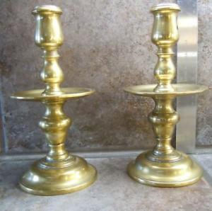 Antique English Brass Candlesticks: 17th Century Candle Holder Reproductions