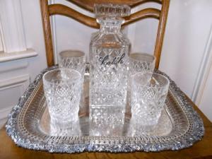 Vintage crystal Liquor decanter set with silverplate tray (GORGEOUS!)