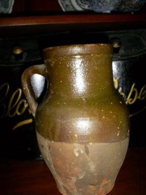 Early 19th C. Antique Redware Glazed Pottery Jug Pitcher Stoneware Primitive
