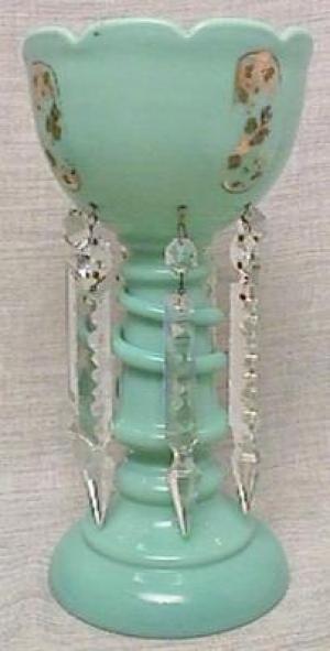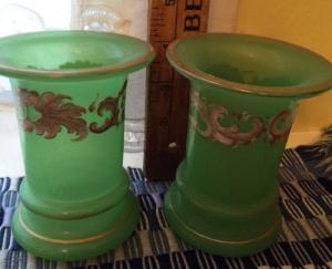 Vase Set Antique French Opaline Green Glass Gold Trim Hand painted Bubbles