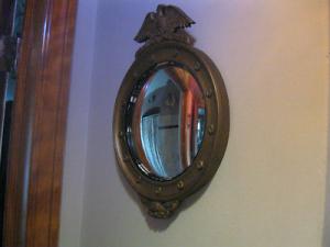 ANTIQUE FEDERAL BULLSEYE MIRROR WITH CONVEX GLASS AND EAGLE