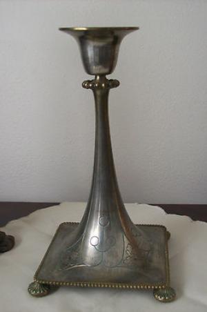 ARTS & CRAFTS PAIRPOINT SILVERED BRASS CANDLESTICK-marked