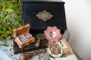 LOT ANTIQUE FRENCH WRITER'S OR ECRITOIRE BOX STAMP CARD CIRCA 1900