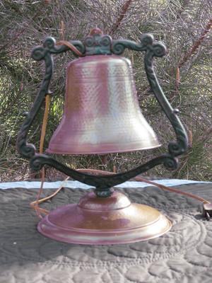 Antique Early Century Hammered Copper Cast Iron Bell Table Lamp Mission Era