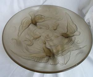 VERLYS, GANNETS DIVING FOR FISH, FROSTED ON GREEN CENTERPIECE BOWL