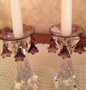 Vintage Amethyst Czech Crystal Bobeche & Prism Set chandelier parts
