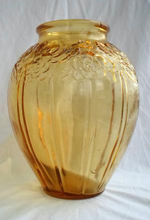 Art Nouveau Vase, Large, yellow, flowers, Mid 20th century