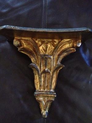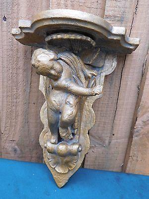 SUPERB 18thC GOTHIC WOODEN GILT DECORATED SHELF BRACKET WITH CHERUB FIGURE c1800