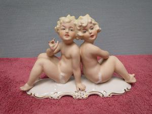 GERMAN PORCELAIN FIGURINE WALLENDORF PUTTI YOUNG CHILD NAKED BACK TO BACK