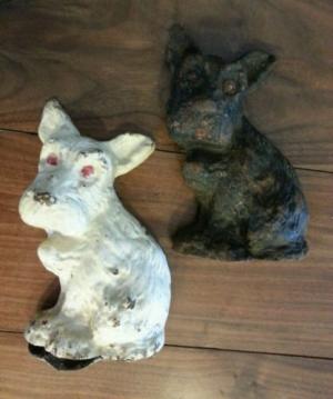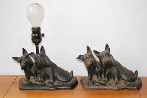 ANTIQUE CAST IRON SCOTTISH TERRIER DOG 157 TWIN SCOTTIES TABLE LAMP & DOOR STOP