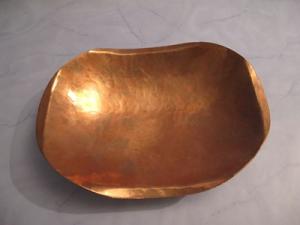 Foot bowl, copper + brass, cm 18.5 D, Vienna, see Hagenauer, signed