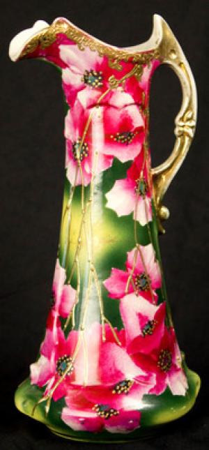 Antique Art Nouveau Hand Painted Gold GIlt Moriage Pitcher w Poppies Flowers