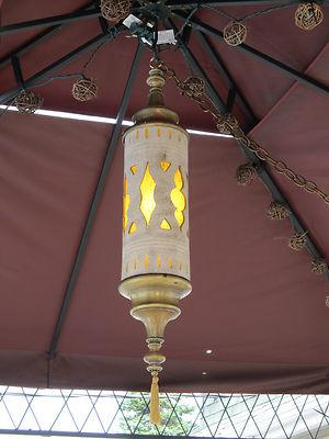 Vtg RETRO Mid Century MOD Cylinder Swag brassHanging AMBER Lamp Hollywood light