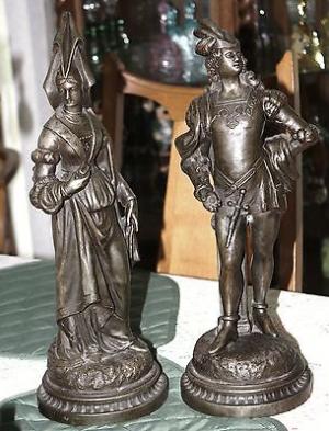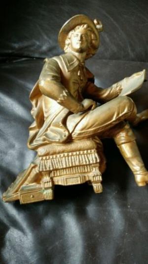 Antique Bronzed Spelter Metal Seth Thomas Musketeer Poet Clock Topper Statue