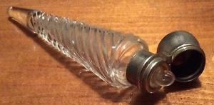 ANTIQUE Swirl Style GLASS PERFUME BOTTLE with Sterling Silver Lid & Stopper