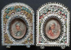 REDUCED! 2 ANTIQUE/VINTAGE MICRO MOSAIC FRAMES, approx. 2" high, ITALY