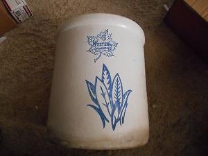 Vintage Western Stoneware Co Monmouth Pottery Crock 6 Gallon w/Leaf & Plants