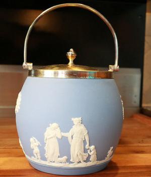 Antique C1900 Wedgwood Jasperware Light Blue Dip Biscuit Cracker Jar Barrel NR