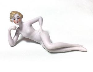 ANTIQUE PERFUME POWDER HALF DOLL FIGURAL SITZENDORF GERMANY PORCELAIN COMPLETE