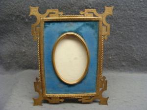 Antique Oval Metal Brass Gold Victorian Bubble Convex Glass Frame