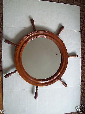 1950s Vintage Collectible Wood Ship's Wheel Style Wall Mirror