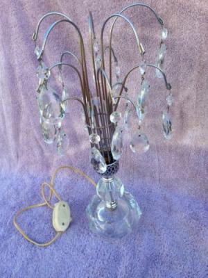 VTG Waterfall Deco Table Lamp Glass Prisms with Crystal Base