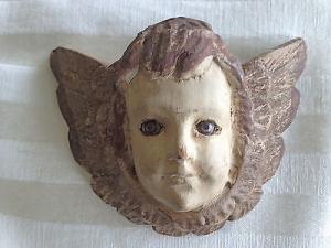 VTG ANTIQUE ANGEL CHERUB PUTTI WOOD CARVED WITH GLASS EYES ITALY