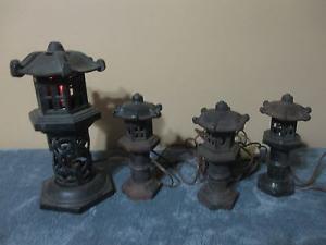 Set Of 4 Antique Japanese Pagoda Lamps Awesome Early Lighting (1) 12" & (3) 8"