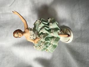 4 Inch Dresden Figurine, Ballerina wiht mint green dress