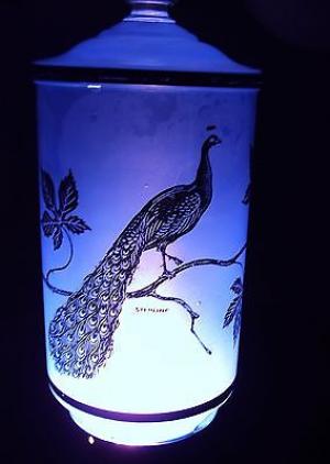 ANTIQUE ORIGINAL HAND PAINTED 3 WAY LIGHT HURRICANE LAMP