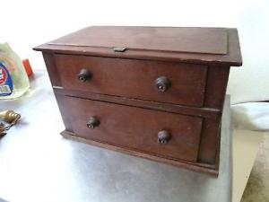 AntiqueTwo Drawer Sewing Spool Box w/ Revolving Drawer
