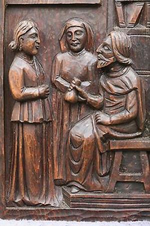 SUPERB 19thC BLACK FOREST WOOD PANEL WITH FIGURE CARVINGS OF CONVENT ORIG c1880s
